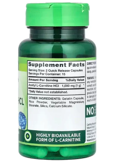 Cada porção deste suplemento oferece 1.000 mg de Acetil L-Carnitina HCl em uma fórmula de alta potência. As cápsulas de liberação rápida garantem uma absorção eficiente e simples de tomar, fornecendo a biodisponibilidade que você procura em um suplemento de qualidade.