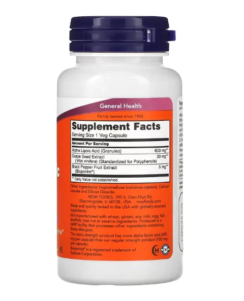 Ácido Alfa Lipóico, 600mg, 60 Cápsulas, Now