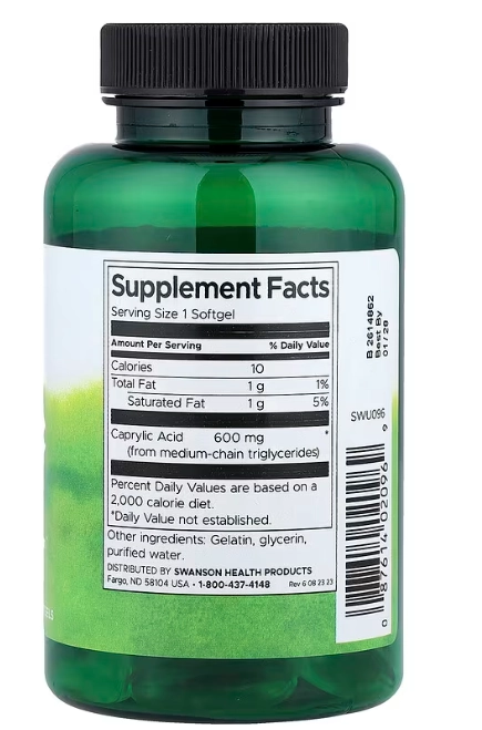 Ácido Caprílico 600mg, 60 Cápsulas, Swanson