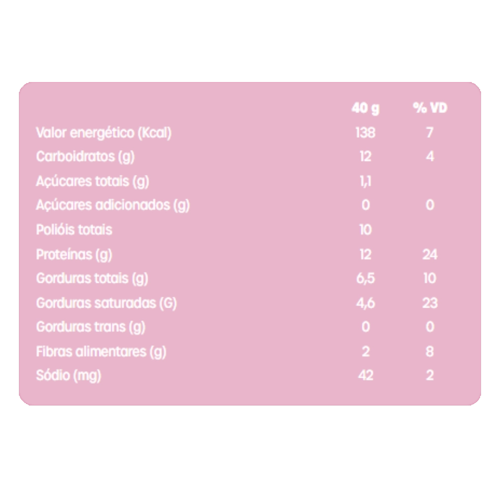 Perfeita para quem busca praticidade no dia a dia sem abrir mão do prazer, essa barra é compacta, nutritiva e zero adição de açúcar. Uma escolha deliciosa para acompanhar seus treinos, momentos de trabalho, viagens ou como lanche entre refeições.