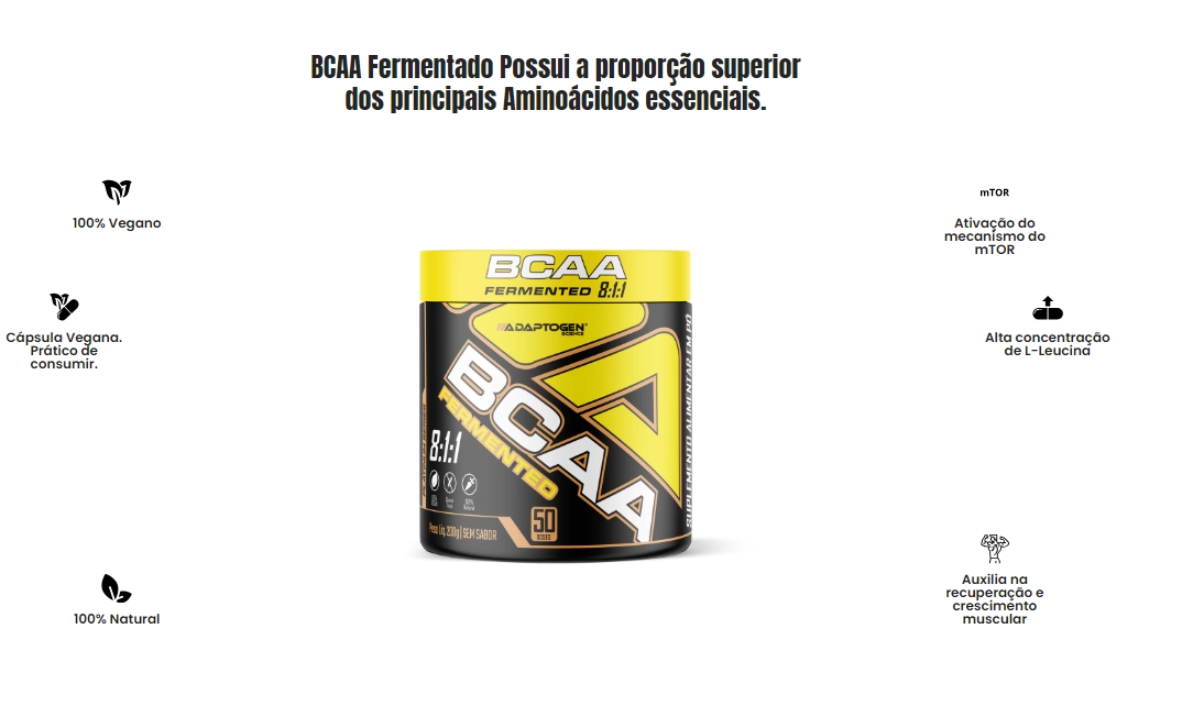 BCAA Fermentado 8.1.1, 200g Sem Sabor, Adaptogen
