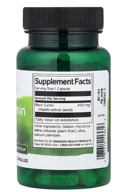Black Cumin Seed 400mg, Semente de Cominho Preto, 60 Cápsulas, Swanson