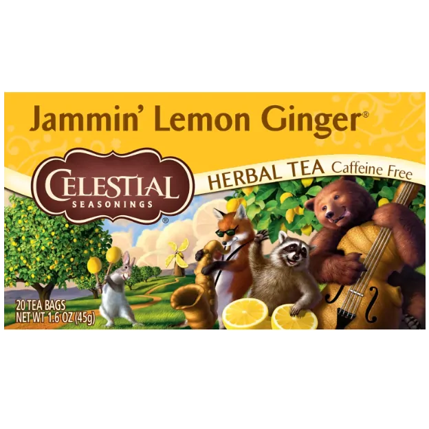 Chá de Ervas Sem Cafeína, Jammin' Limão e Gengibre, 20 saquinhos, 45g, Celestial Seasonings