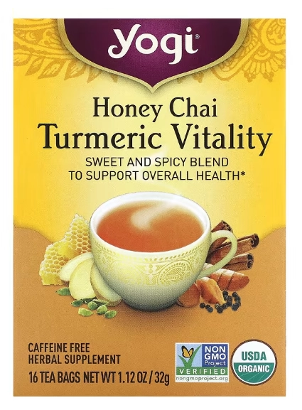 Chá Vitalidade de Cúrcuma com Mel, 16 Saquinhos, 32g, Yogi