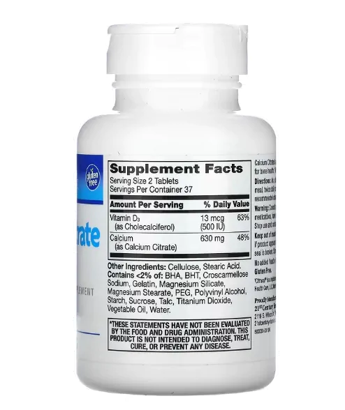 Citrato de Cálcio + D3 Máximo, 75 Comprimidos, 21st Century