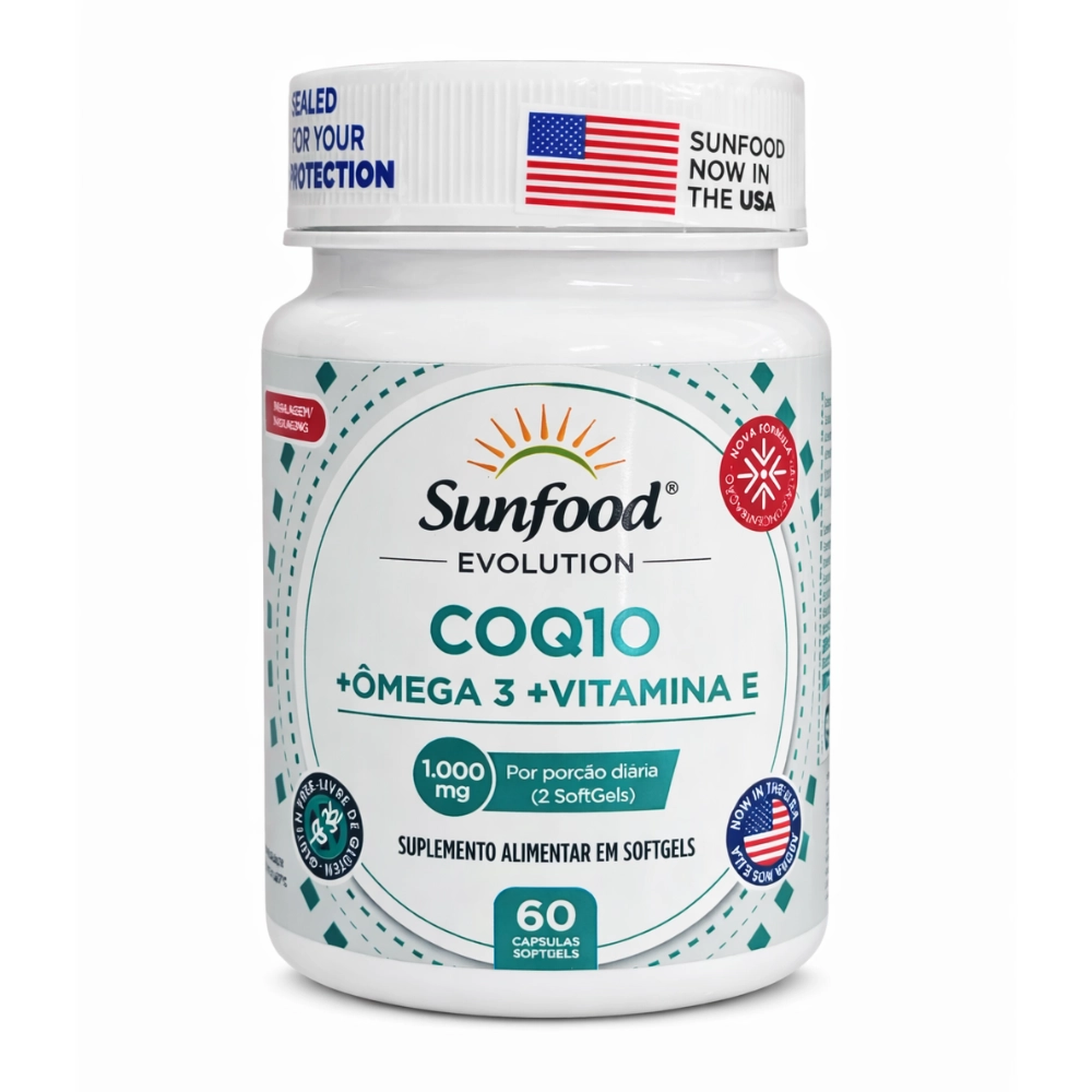 Coenzima CoQ10 com Ômega3 e Vitamina E, 1000mg, 60 Cápsulas, Sunfood