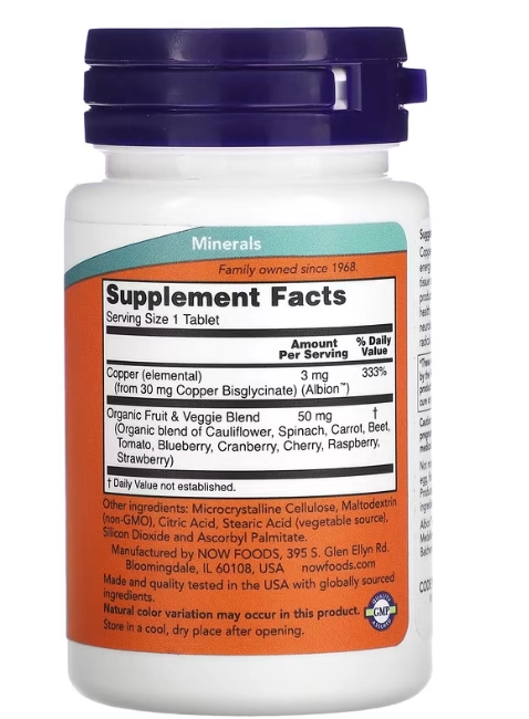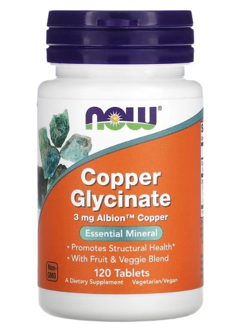 Glicinato de Cobre 3mg 120 Comprimidos NOW Foods