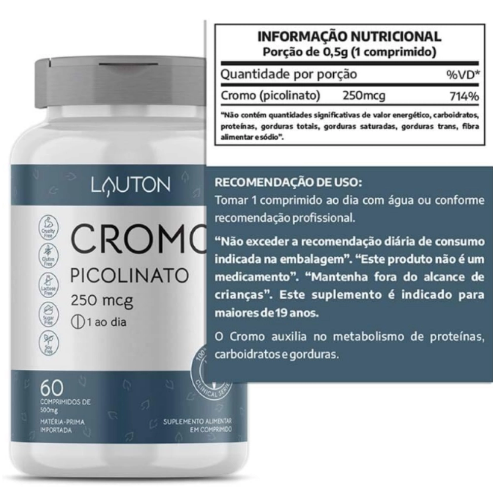 O Cromo Picolinato da Lauton Nutrition é um suplemento nutricional que combina ácido picolínico e cromo, especialmente indicado para pessoas com diabetes ou resistência à insulina. Ele ajuda a regular os níveis de glicose e insulina no sangue, contribuindo para a manutenção da saúde metabólica.