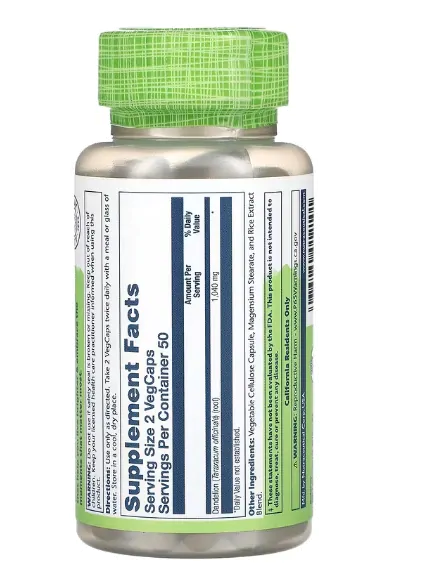 Dandelion, Dente de Leão, 520mg, 100 VegCaps, Solaray