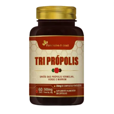 Tri Própolis (vermelha, verde, marrom), 500mg, 60 Cápsulas