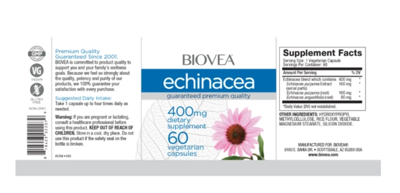 Echinacea 400mg, 60 Cápsulas, Biovea