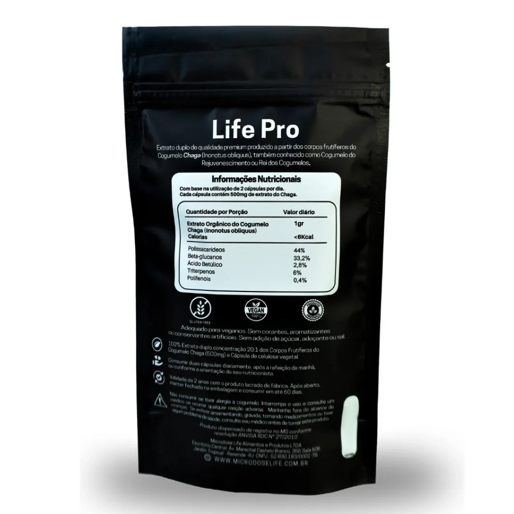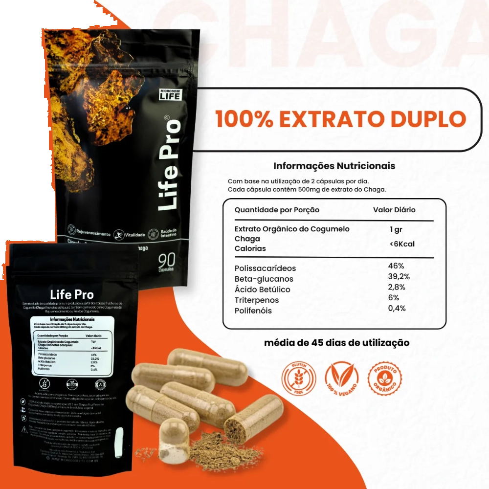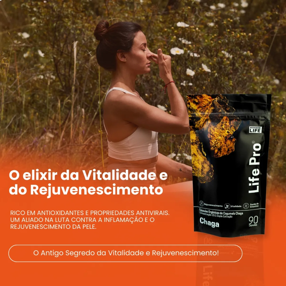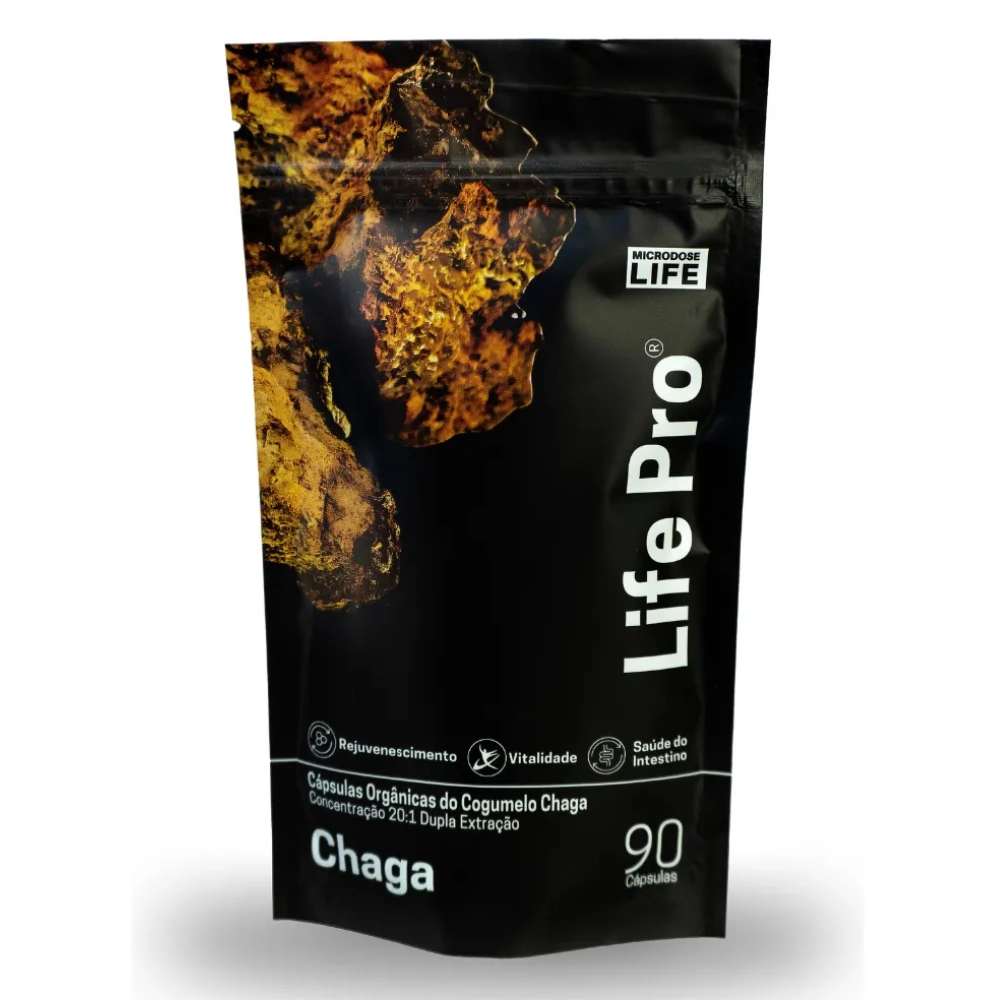 Extrato Chaga, Cogumelo do Antienvelhecimento, Para Pele e Bem-estar Digestivo, 90 Cápsulas, Microdose Life