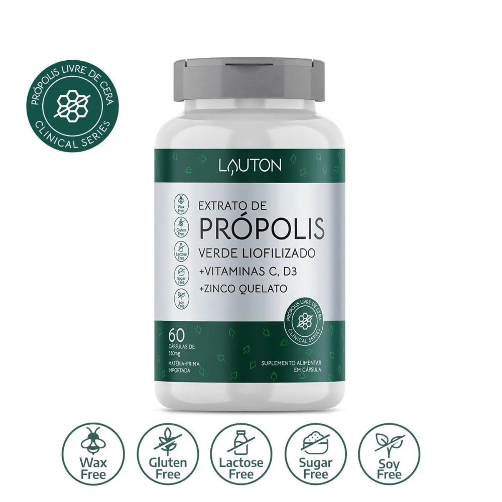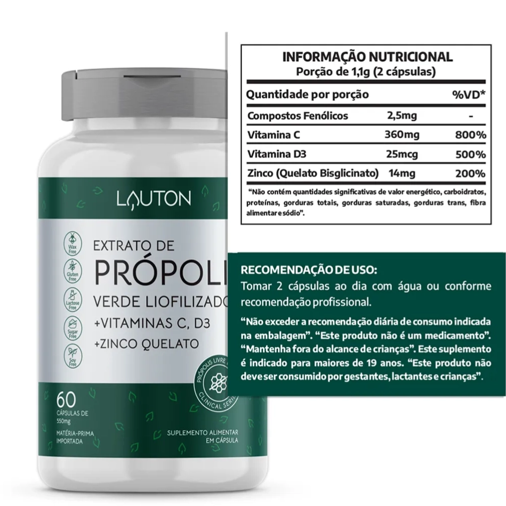 Extrato de Própolis Verde + Zinco + Vitamina C + Vitamina D3 – Cápsulas Lauton Nutrition