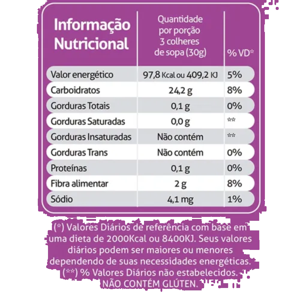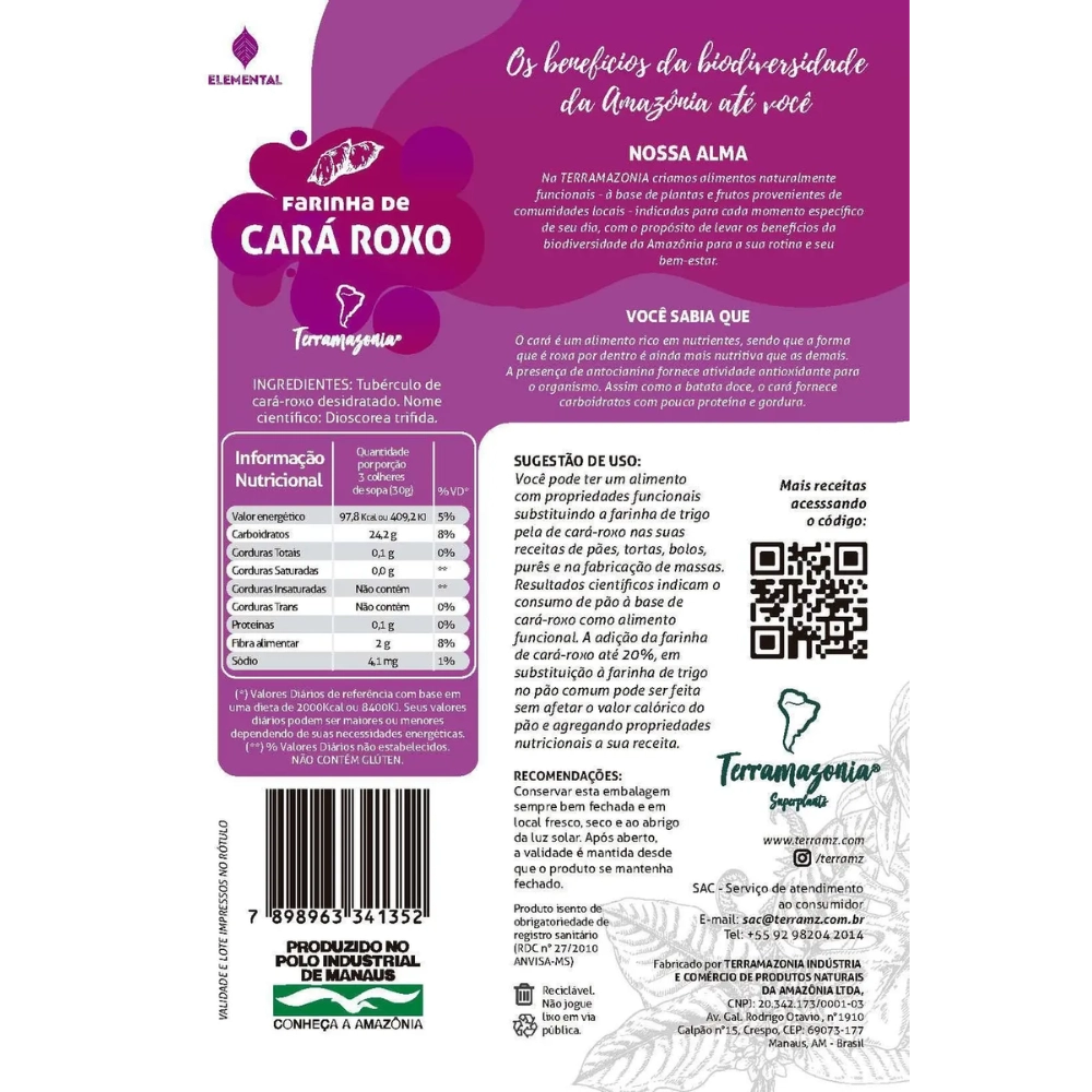 A farinha de cará-roxo é feita a partir do tubérculo amazônico Dioscorea trifida, conhecido por seu valor nutricional e propriedades funcionais. Rica em fibras e carboidratos complexos, possui baixo teor de gorduras e sódio, sendo uma excelente opção para quem busca uma alimentação equilibrada e natural.
