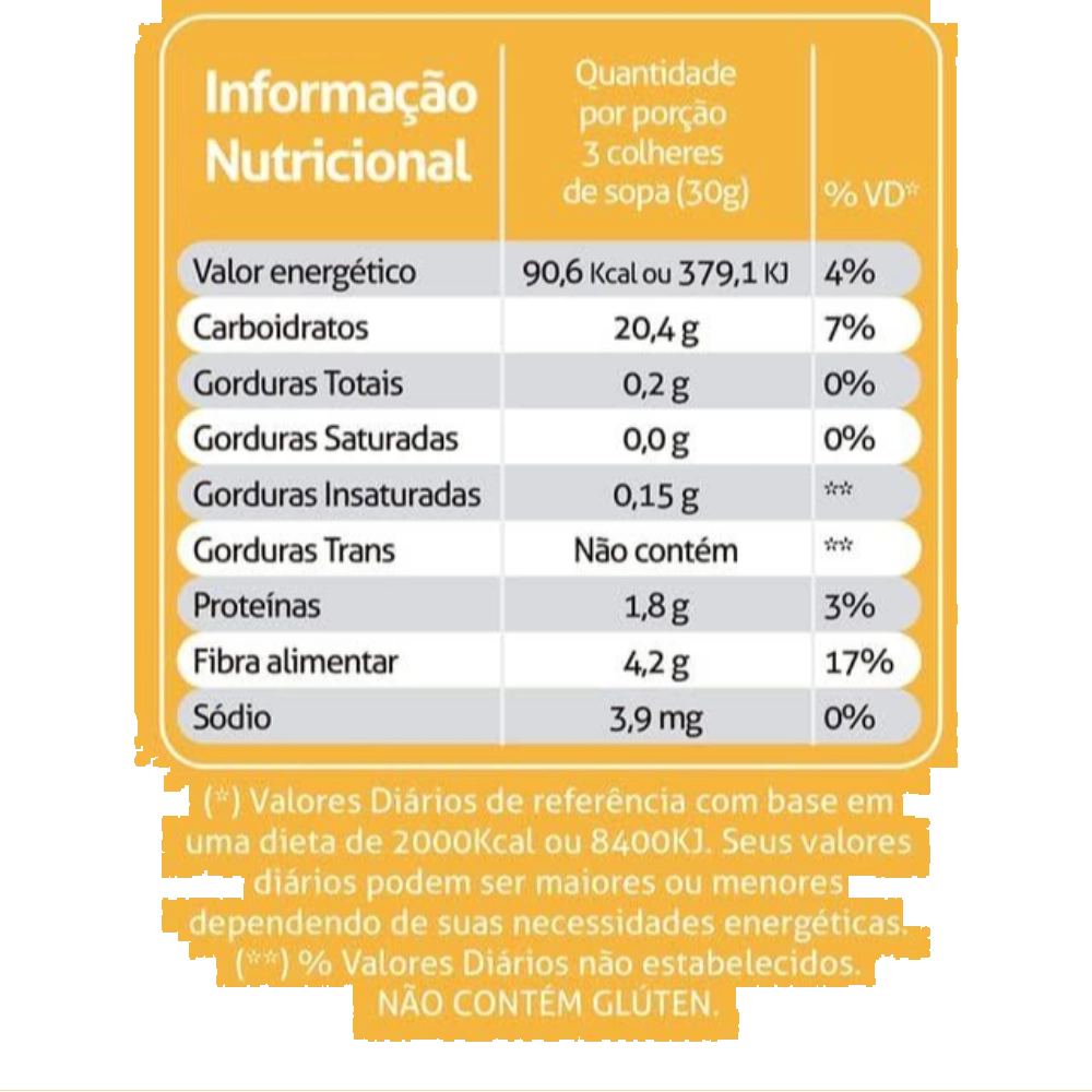 Com baixo teor calórico e sem glúten, é uma excelente opção para complementar a dieta diária de forma natural e funcional. Ideal para quem busca bem-estar, saúde intestinal e controle nutricional.