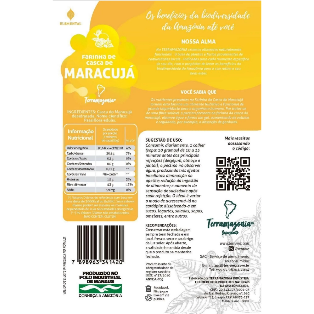 A farinha de casca de maracujá é feita a partir da casca desidratada da fruta (Passiflora edulis), preservando suas fibras solúveis, especialmente a pectina. Essa fibra forma um gel natural no estômago, ajudando a regular a absorção de gorduras e promovendo sensação de saciedade, contribuindo para uma alimentação mais equilibrada.