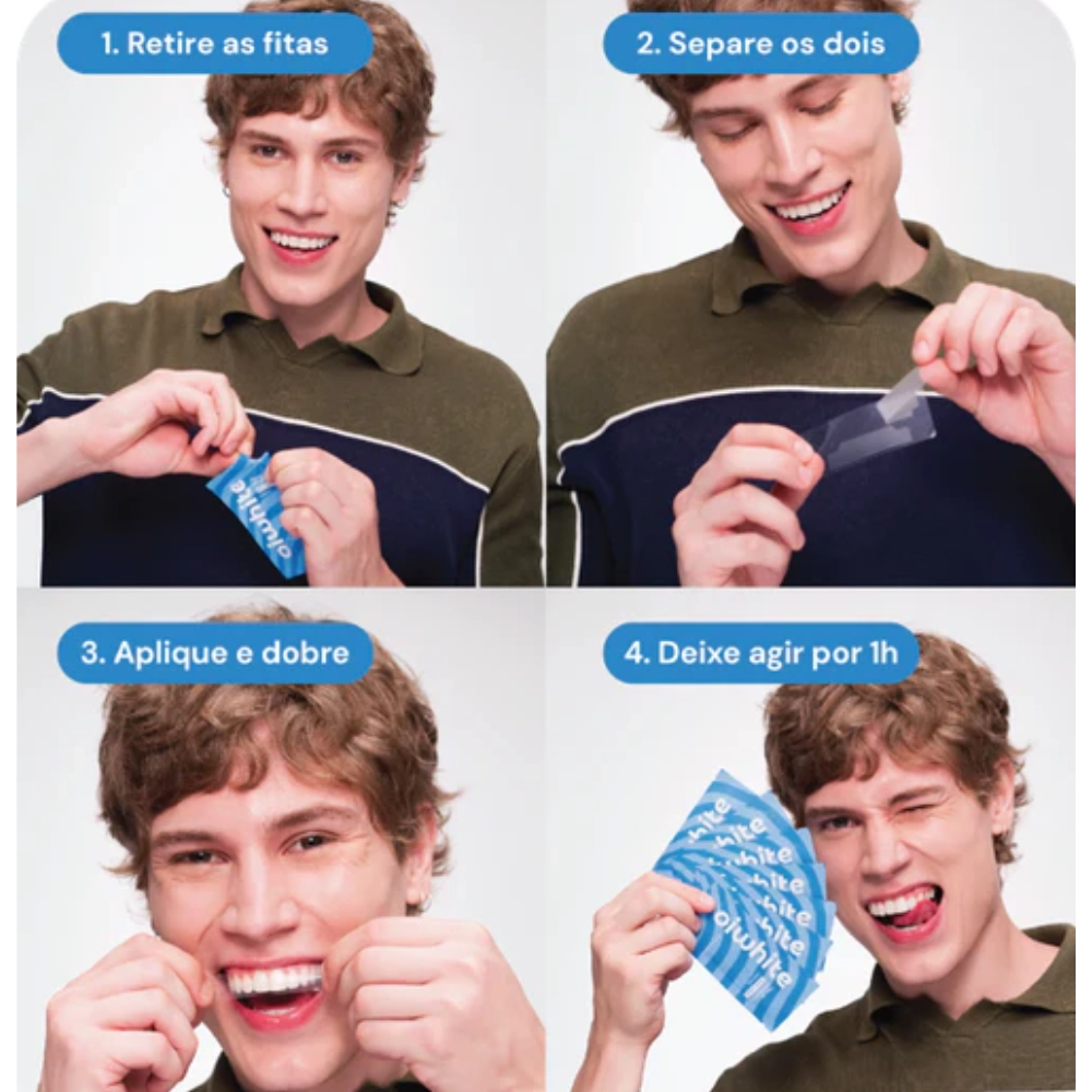 Transforme seu sorriso com as fitas de clareamento oiwhite e conquiste mais confiança em apenas uma semana.