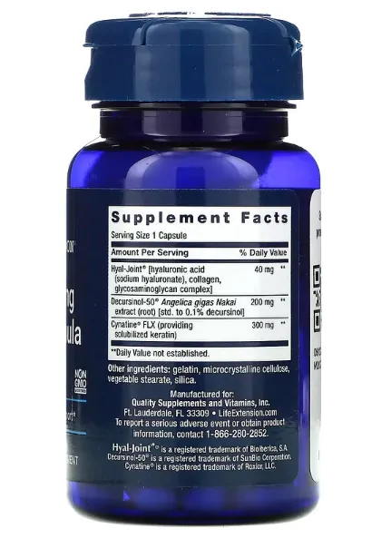 ALÍVIO DA DESCONFORTO DAS ARTICULAÇÕES EM DIAS - Não deixe que a rigidez e o desconforto das articulações o impeçam de viver a vida ao máximo. Nossa Fórmula de Ação Rápida para Articulações oferece três ingredientes inovadores que são formulados para fornecer suporte para as articulações em questão de dias. LUBRIFIQUE E JUNTAS SENSÍVEIS À ALMOFADA - O ácido hialurônico é um componente essencial da pele e das articulações. Nossa fórmula contém Hyal-Joint para promover o crescimento saudável do tecido articular, lubrificação e conforto das articulações, mas também para ajudar sua pele a reter níveis saudáveis ??de hidratação. MANTENHA SUAS ARTICULAÇÕES FLEXÍVEIS - A Fórmula de Ação Rápida para Articulações também inclui um extrato clínico estudado da planta angélica coreana, que demonstrou ajudar a promover uma resposta inflamatória saudável. Também existe uma forma peptídica da proteína queratina para apoiar as defesas oxidativas do seu corpo. Isso ajuda a manter a estrutura e função articular saudáveis. OS INGREDIENTES IMPORTAM - Obtidos usando apenas os melhores ingredientes crus com a pureza e a potência que seu corpo merece. Este produto é certificado como não OGM e sem glúten. Fabricado nos EUA e um Certificado de Análise está disponível para cada produto que produzimos. VIVA A SUA VIDA MAIS SAUDÁVEL - Por mais de 40 anos, temos desenvolvido fórmulas avançadas e eficazes, feitas com os mais altos padrões e com base nas mais recentes descobertas científicas. Acreditamos que as respostas para uma vida mais saudável e rica estão ao nosso alcance e que pesquisas científicas rigorosas são o caminho para nos levar até lá. Ou as formulações são criadas usando os ingredientes e dosagens exatos usados nos estudos que os inspiraram, garantindo que a máxima biodisponibilidade e eficácia sejam alcançadas.