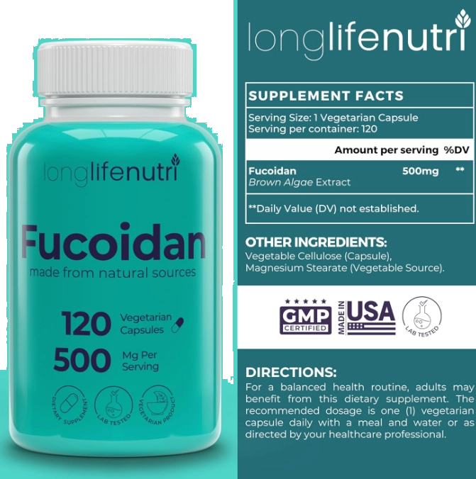 Fucoidano 500mg, Extrato de Alga Marinha Marrom, 120 Cápsulas, LongLifeNutri