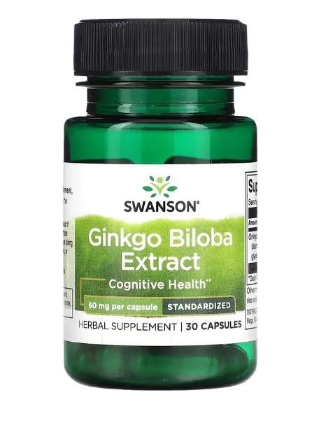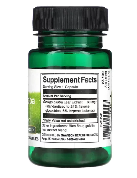 Ginkgo Biloba, Padronizado, 60mg, 30 Cápsulas, Swanson