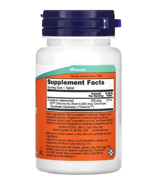 GTF Cromo, 200mcg, 100 Comprimidos, Now