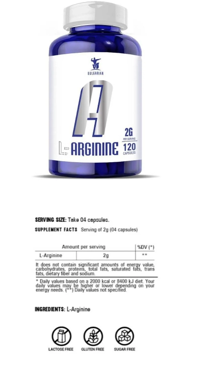 L-arginina, 120 Cápsulas, Bulgarian