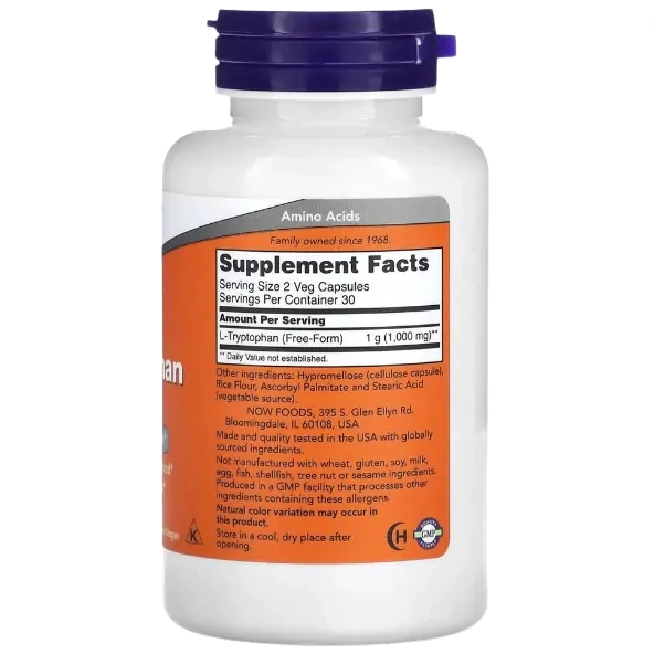 L-Tryptophan 500mg 60 Cápsulas Vegetais, Now Foods
