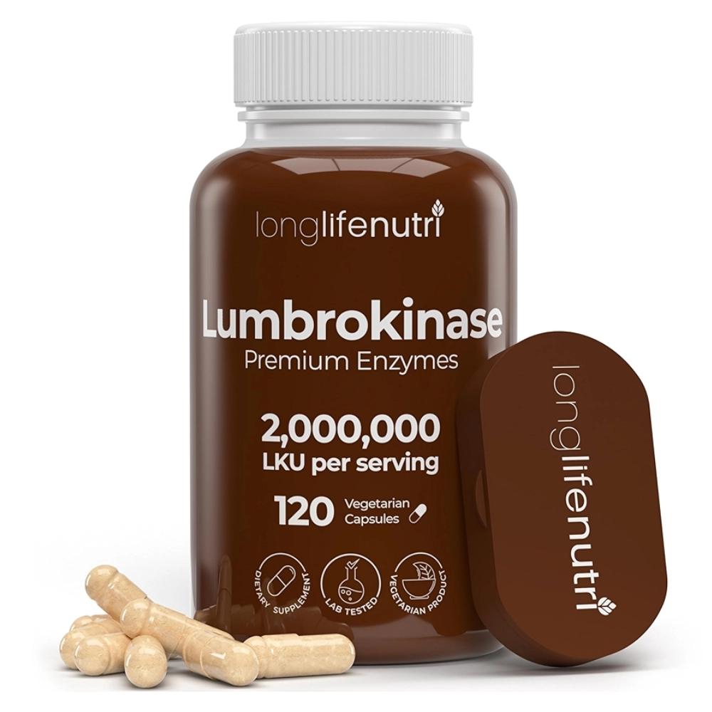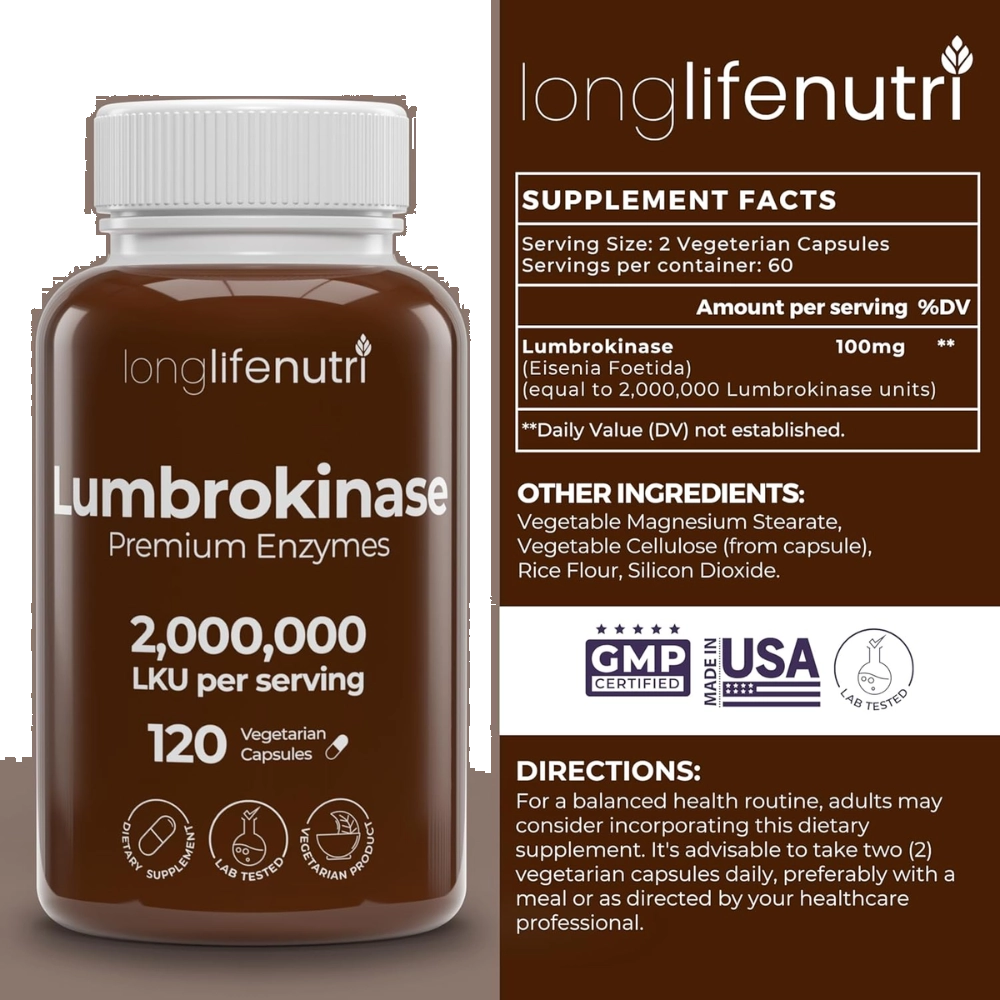 Lumbrokinase Premium Enzymes 2000000 LKU por porção, 120 Cápsulas, Long Life Nutri