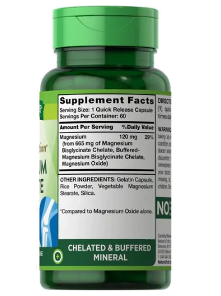 Cada porção de nossas cápsulas de liberação rápida de Glicinato de Magnésio fornece 120 mg de Magnésio, a partir de 665 mg de Quelato de Bisglicinato de Magnésio, Quelato de Bisglicinato de Magnésio tamponado e Óxido de Magnésio. Esta fórmula proporciona absorção superior em comparação com o Óxido de Magnésio sozinho e é uma maneira infalível de incluir este mineral essencial em sua rotina diária.