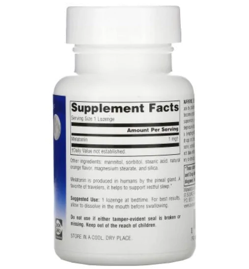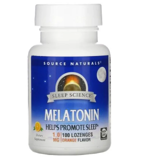 Melatonina 1mg, 100 Pastilhas sublingual, Sabor Laranja, Source Naturals
