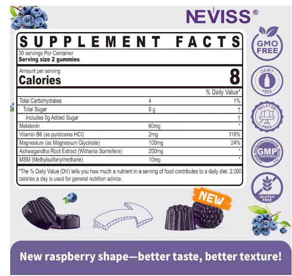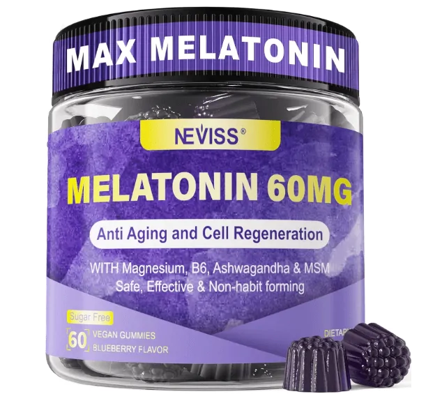 Gomas de Melatonina Extra Forte 60 mg com B6, Ashwagandha, Magnésio e MSM