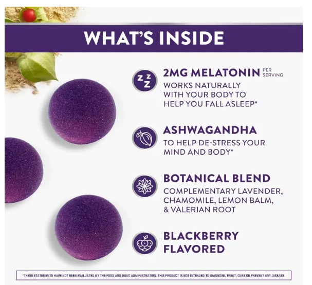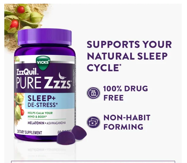 Melatonina ZzzQuil 2mg Com Ashwagandha, 60 Gomas, Vicks