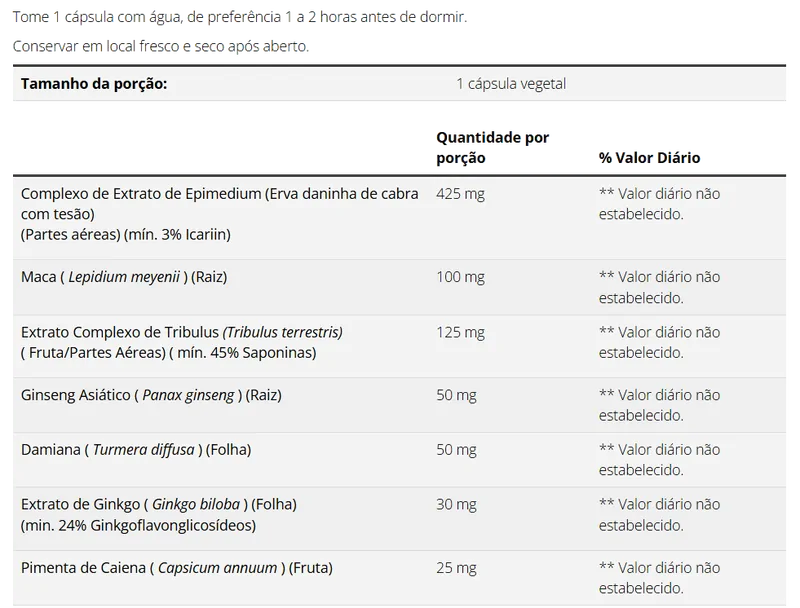 - Tribulus Terrestris, que contribui para a manutenção dos níveis hormonais e favorece a vitalidade e o desempenho
