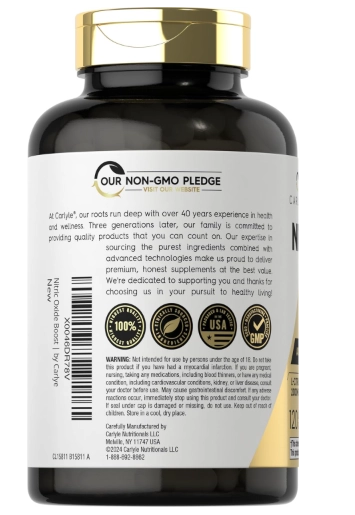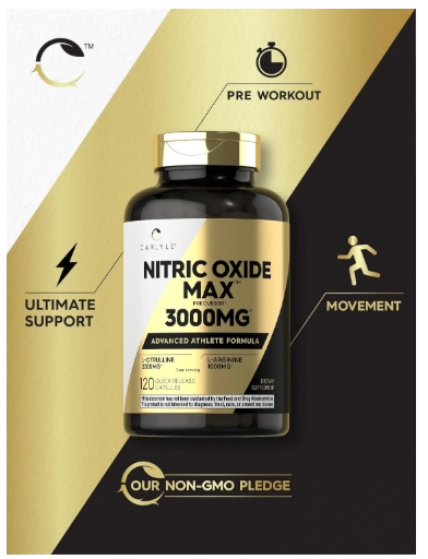 O Carlyle Nitric Oxide Supplement 3000mg foi desenvolvido para quem busca máximo desempenho físico e vascularização eficiente. Sua fórmula combina L-Arginina e L-Citrulina, dois aminoácidos que estimulam a produção natural de óxido nítrico (NO) — responsável por aumentar o fluxo sanguíneo, otimizar o transporte de oxigênio e impulsionar a performance muscular.