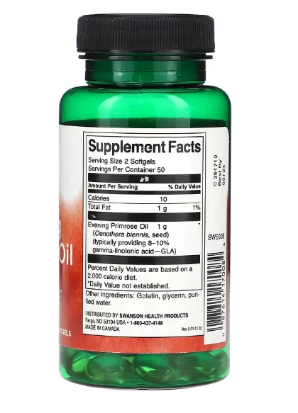 Óleo de Prímula, Evening primrose, 500mg, 100 Cápsulas, Swanson