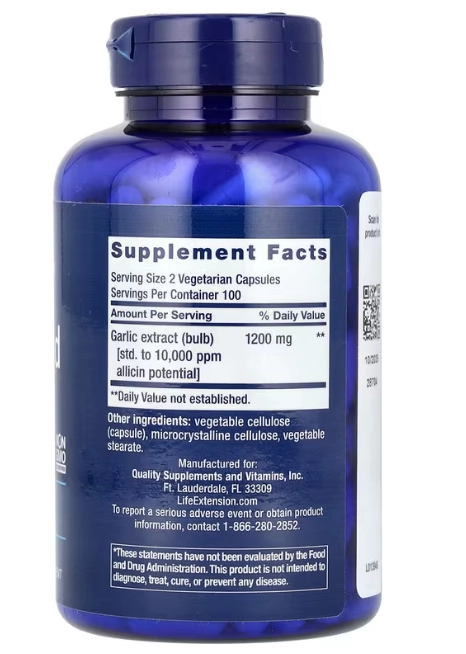 Life Extension Alho Otimizado 600 mg Suporte Imunológico e Cardiovascular