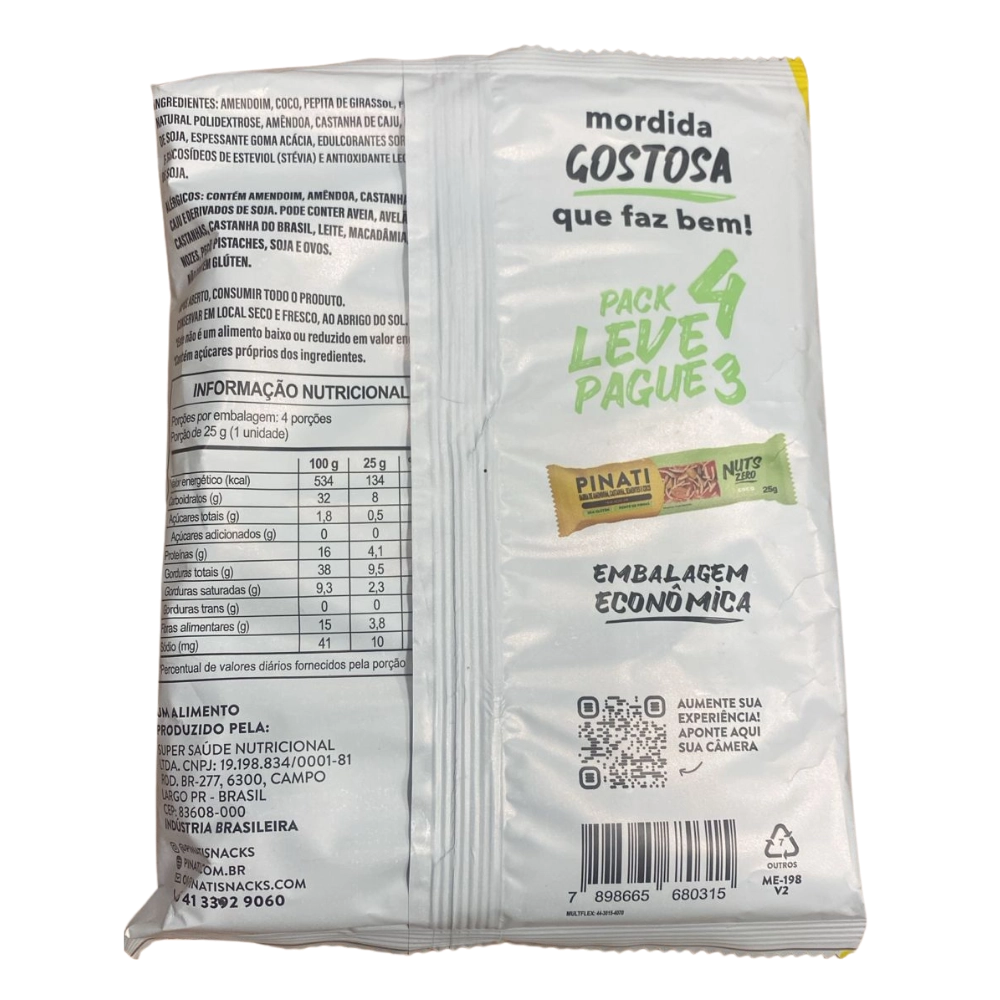 O Pack Barra de Nuts Vegana Coco Pinati Zero 100g – Leve 4 Pague 3 é a opção perfeita para quem busca um lanche saudável, saboroso e econômico. Produzidas com ingredientes naturais e 100% de origem vegetal, as barras combinam o sabor suave do coco com a crocância das nuts, oferecendo energia e nutrição de forma prática para o dia a dia.