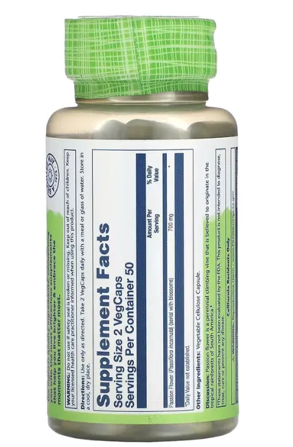 Solaray Passion Flower 700mg Calmante Natural e Equilíbrio Emocional