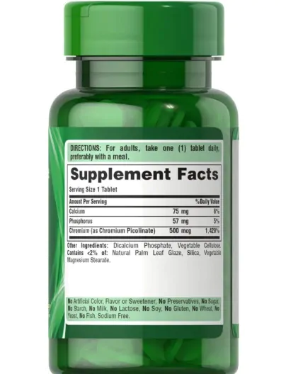 Picolinato de Cromo, 500mcg, 100 Comprimidos, Puritan's Pride