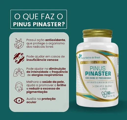 Extrato de casca de Pinho Marítimo (Pinus Pinaster Aiton), Bisglicinato de Zinco, Acetato de DL-AlfaTocoferol, Selenito de sódio, Estearato de Magnésio (INS 470iii), Dióxido de Silício (INS 551) e Silicato de Magnésio (INS 553iii). CÁPSULA: Gelatina. NÃO CONTEM GLÚTEN.
