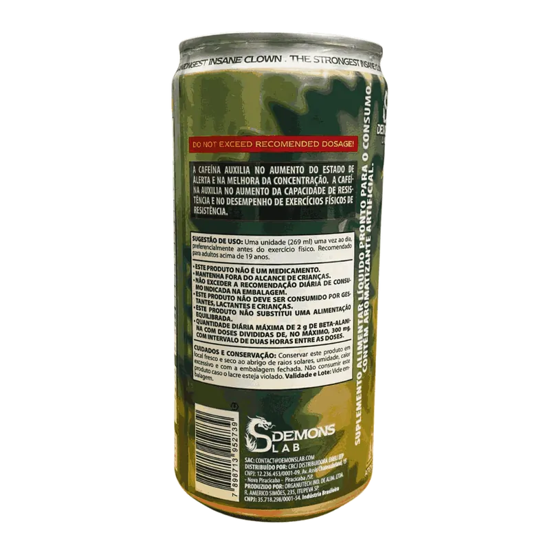 O Insane Clown Energy da Demons Lab é a opção ideal para quem busca mais intensidade nas atividades físicas. Com ingredientes premium como beta-alanina (2,5g), arginina, tirosina, taurina, cafeína (200mg) e vitaminas do complexo B, ele oferece o suporte necessário para melhorar seu desempenho pré-treino.