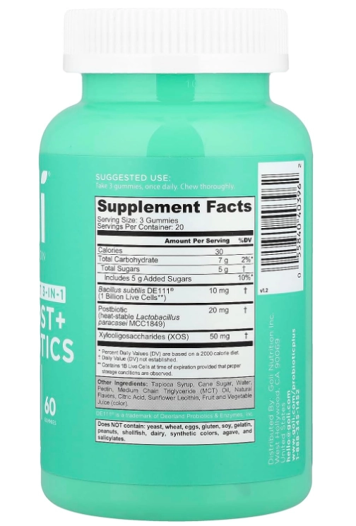 Únicas gomas 3-em-1 do mundo combinando prebiótico + probiótico + pós-biótico