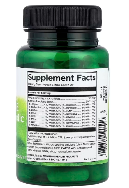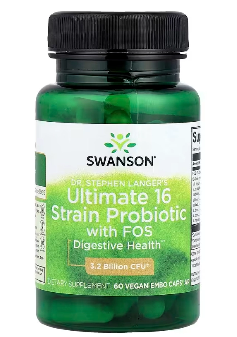 Probiótico Ultimate 16 cepas do Dr. Stephen Langer com FOS, 60 cápsulas, Swanson