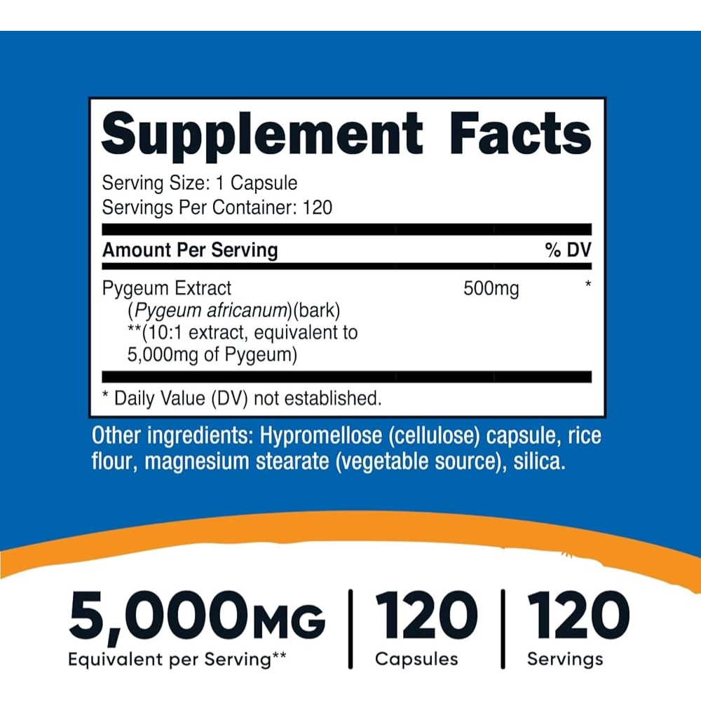 Pygeum 5000 mg, 120 Cápsulas, Nutricost