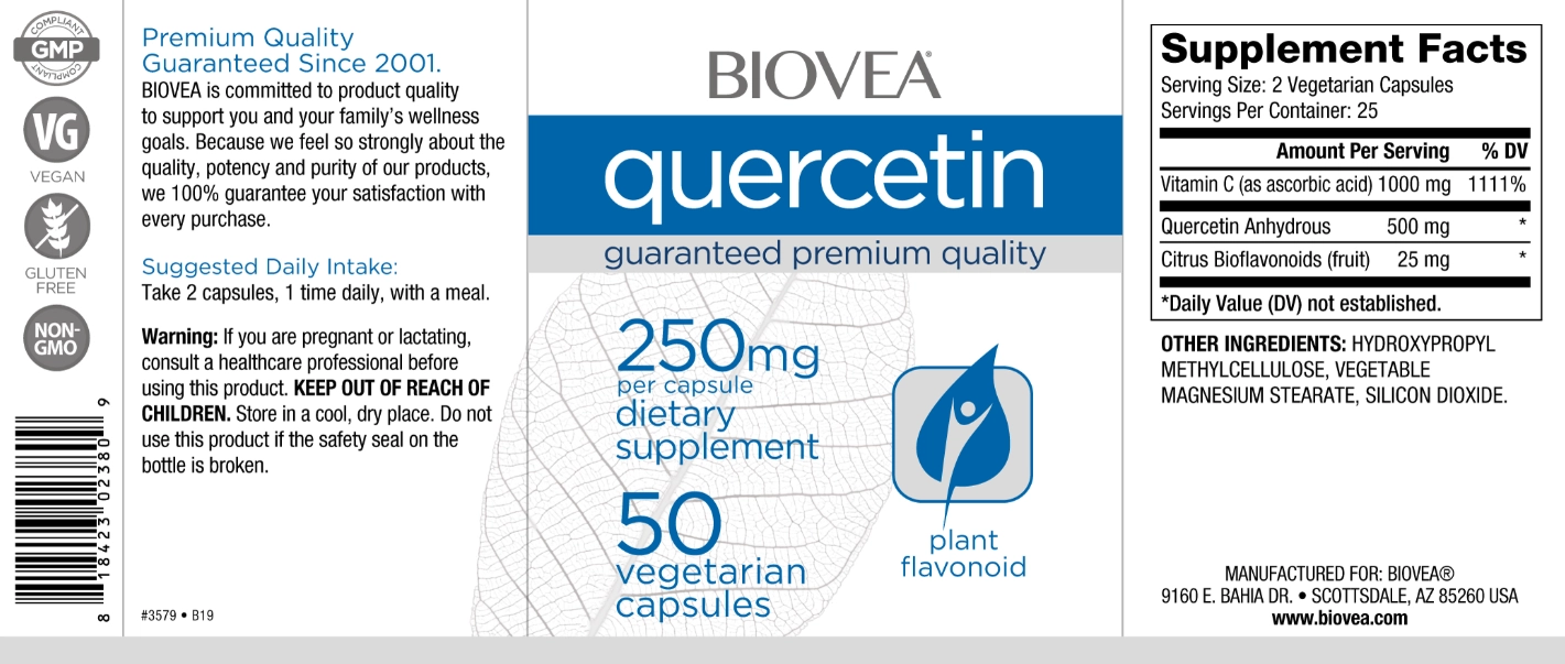 Quercetina 250mg, 50 Cápsulas, Biovea