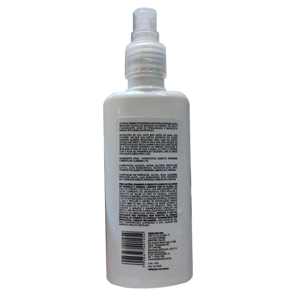 O Repelente com Icaridina da Action foi desenvolvido para garantir proteção prolongada e eficaz contra mosquitos transmissores de doenças, proporcionando mais segurança para toda a família. Com fórmula avançada à base de Icaridina, oferece até 4 horas de proteção contínua contra mosquitos da dengue, zika e chikungunya, além de repelir pernilongos e muriçocas. É perfeito para uso diário e atividades ao ar livre, com toque seco e agradável na pele.