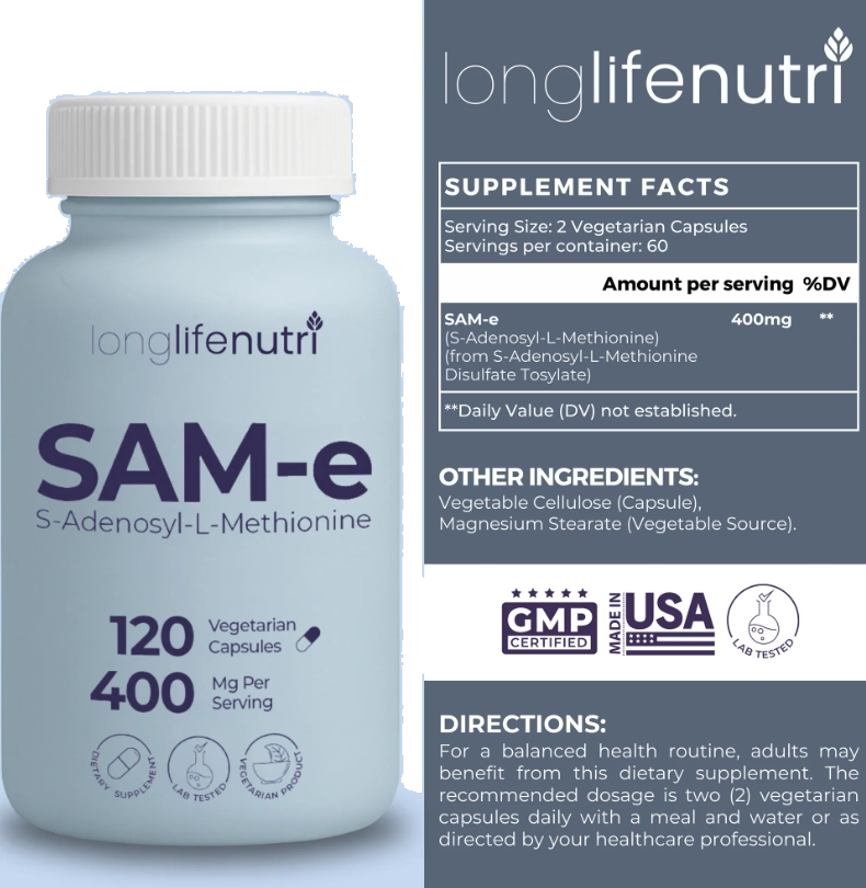 SAM-e 400mg, 120 Cápsulas, LongLifeNutri