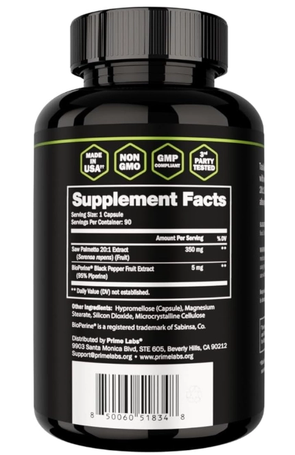 Prime Labs Saw Palmetto 90 Cápsulas Suporte Natural para a Próstata, Hormônios e Cabelos
