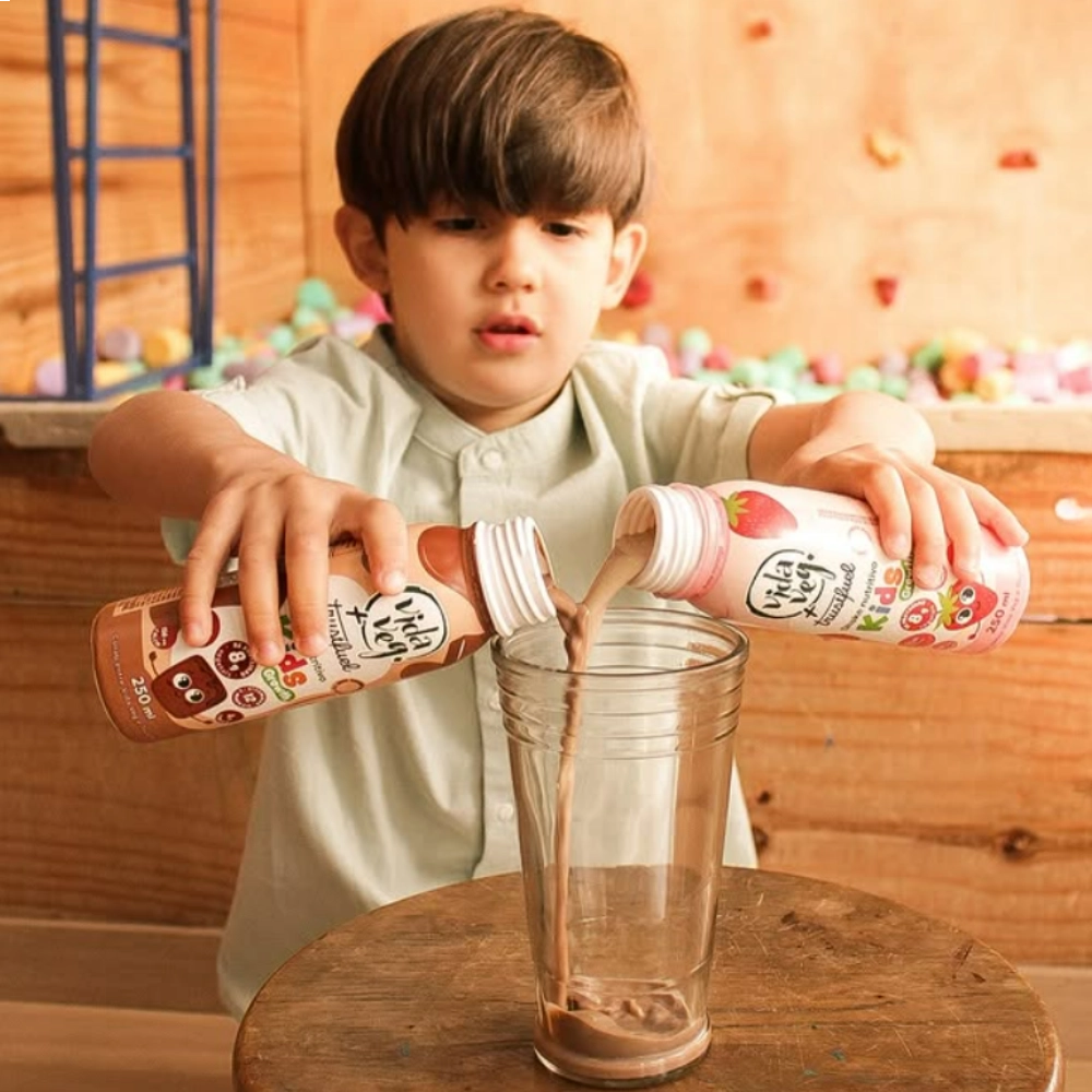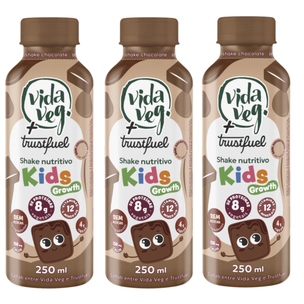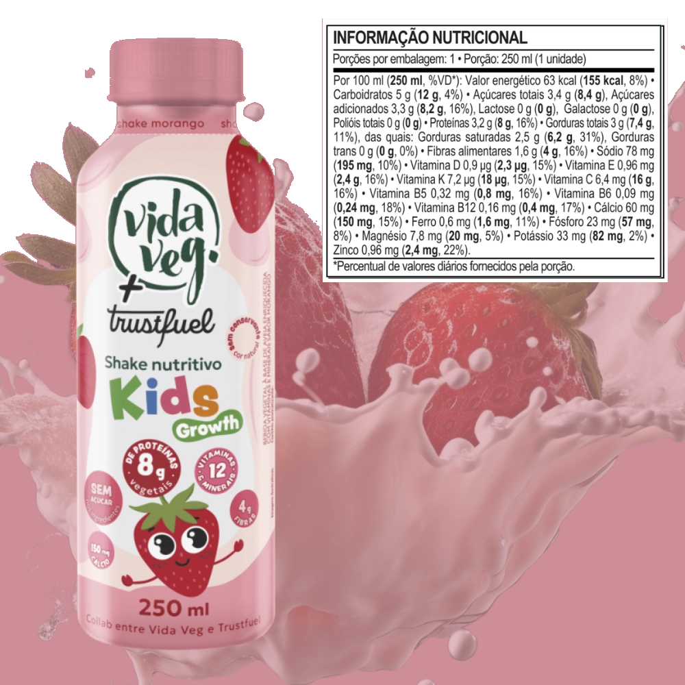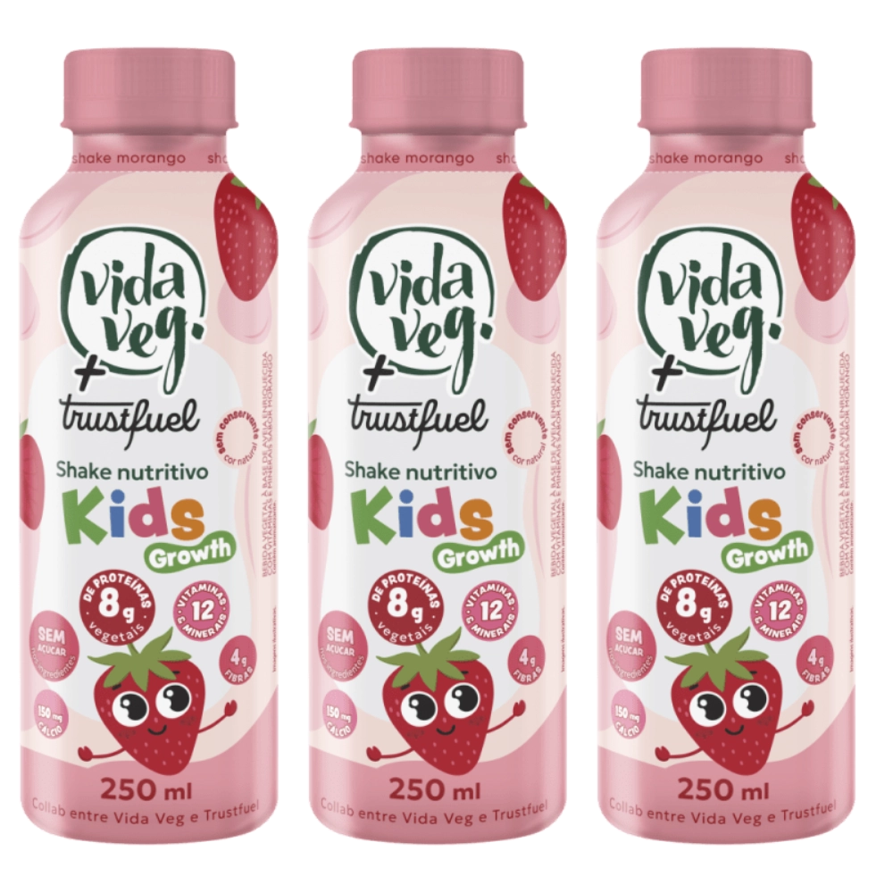 O primeiro shake infantil com proteína vegetal do Brasil. Desenvolvido pela A Vida Veg em parceria com a Trustfuel, o Shake Nutritivo Kids é um multivitamínico pronto para beber, pensado para as necessidades nutricionais das crianças — prático, saboroso e sustentável.