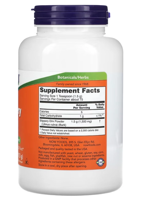 Slippery Elm Powder, Olmo-escorregadio em pó, 113g, Now
